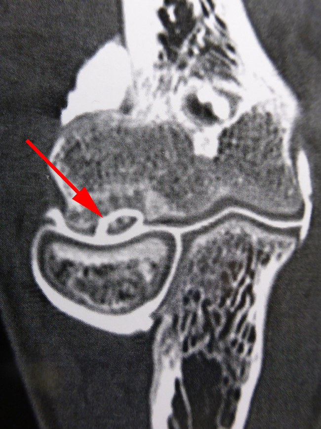 Ce fragment libre dans le coude provient d’une ostéochondrite.