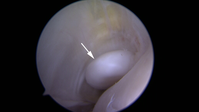 Il est facilement enlevé sous arthroscopie.