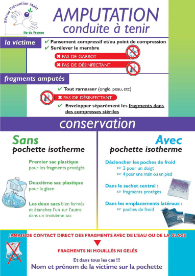 Le taux de survie des doigts réimplantés est variable en fonction du niveau d’amputation du type d’accident de la qualité du conditionnement du fragment pendant le transport. Il varie de 90 % (section nette à la base du doigt) à 50 % (arrachement de l’extrémité du doigt).